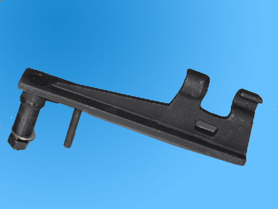卡鉗式抱索器入繩導(dǎo)入裝置,由兩塊靠近形成引導(dǎo)槽的導(dǎo)板構(gòu)成。本實用新型具有如下的有益效果,由于在礦用索道靜態(tài)上車裝置上裝有卡鉗式抱索器入繩導(dǎo)入裝置,當(dāng)抱索器在軌道上滑行過程中抱索器上的卡鉗在引導(dǎo)槽中運行,不會產(chǎn)生擺動,使卡鉗準(zhǔn)確的導(dǎo)入鋼絲繩,在抱索器離開軌道后,卡鉗能卡緊在鋼絲繩上,避免造成抱索器掉繩的安全事故。度內(nèi)坡度,新型卡鉗式抱索器采用35錳鋼鑄造,強度和柔韌性都比以往抱索器有很大提高,卡鉗式抱索器適應(yīng)范圍廣,摘取方便.
